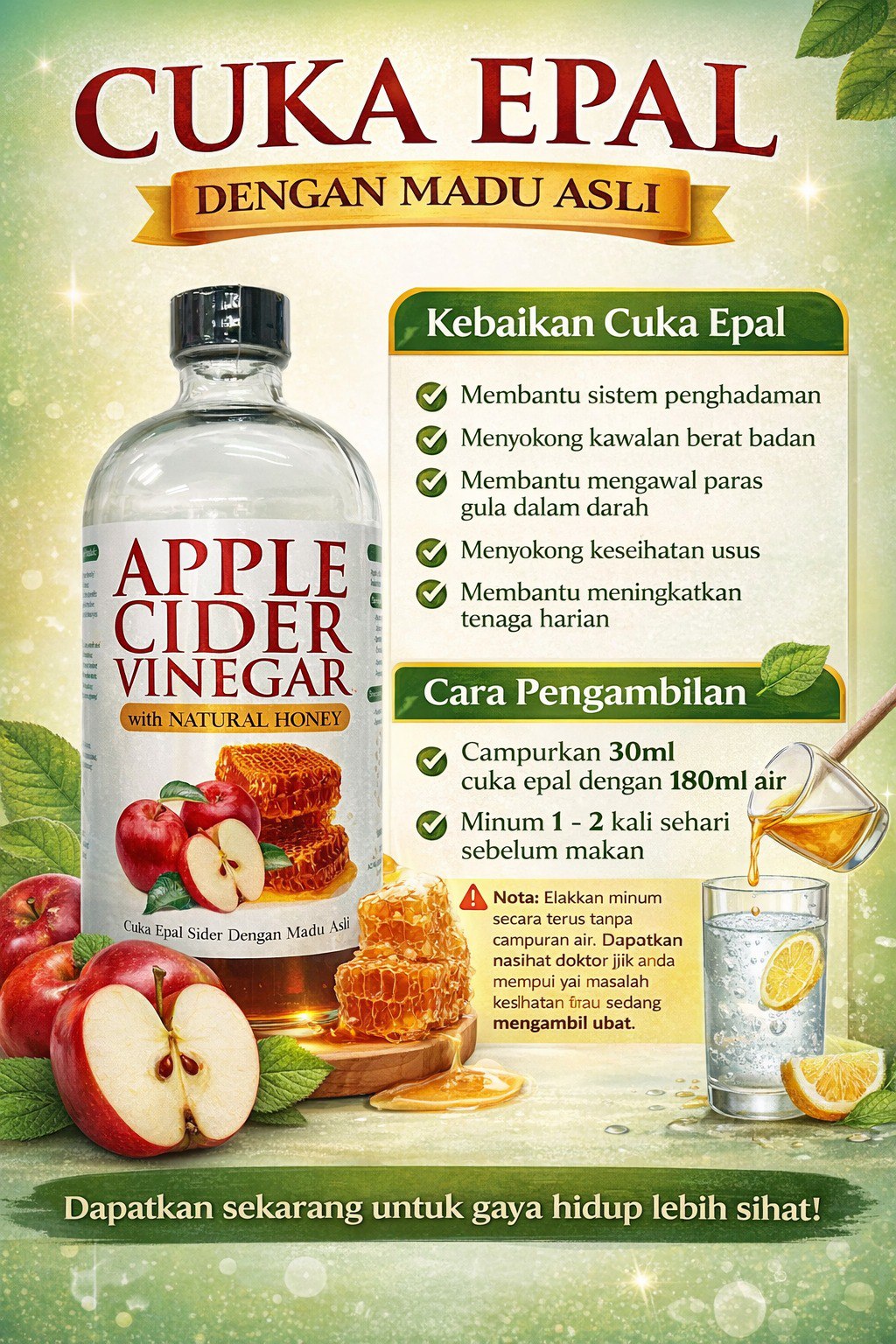 / Cuka Epal Sider dengan Madu Asli